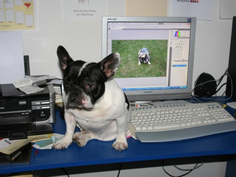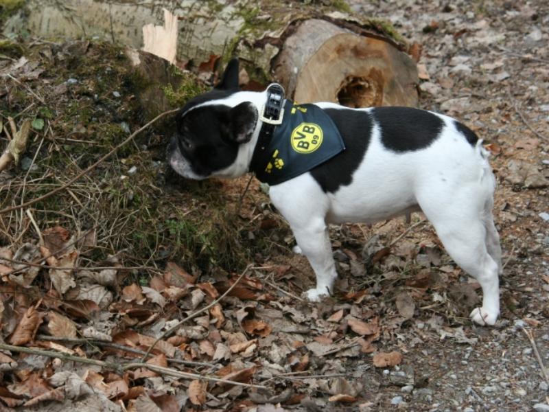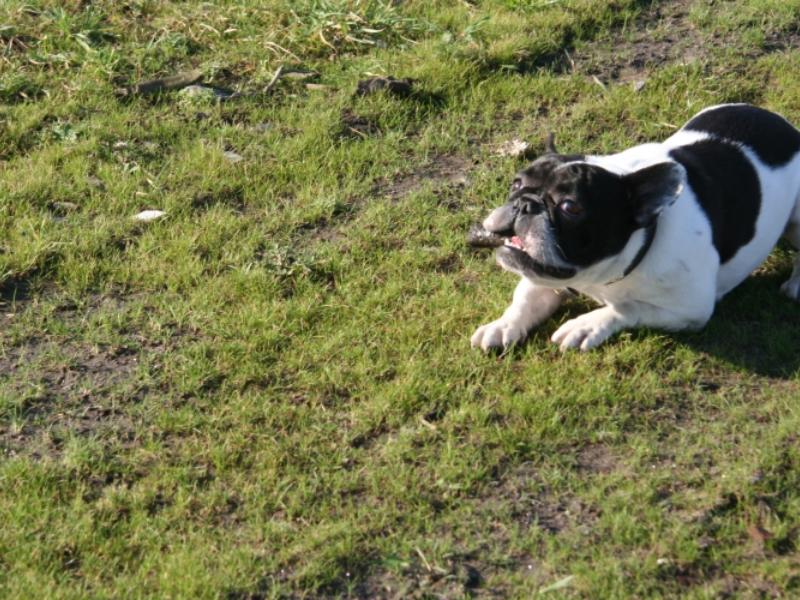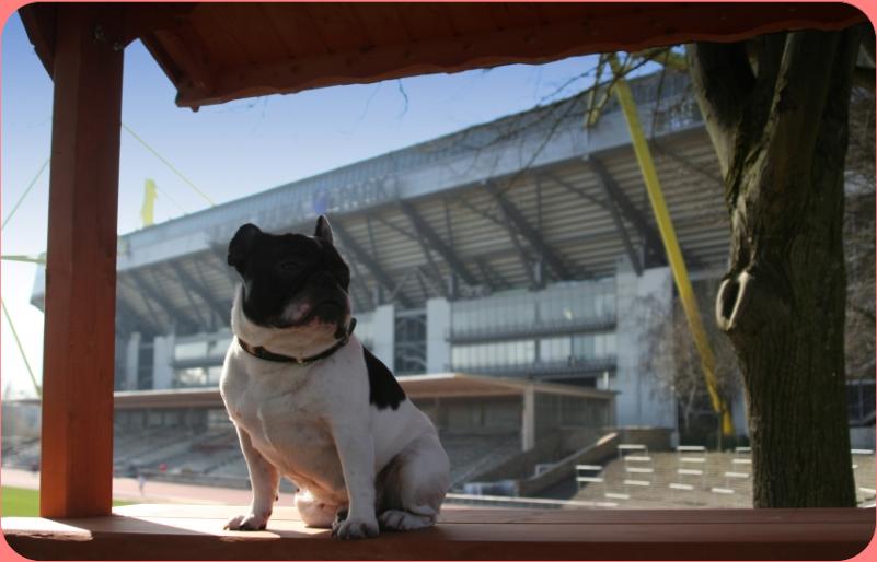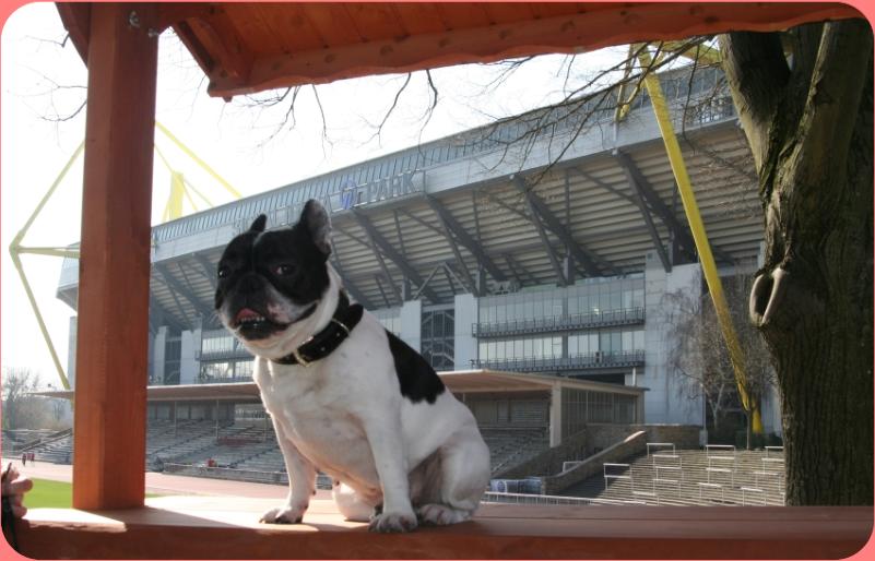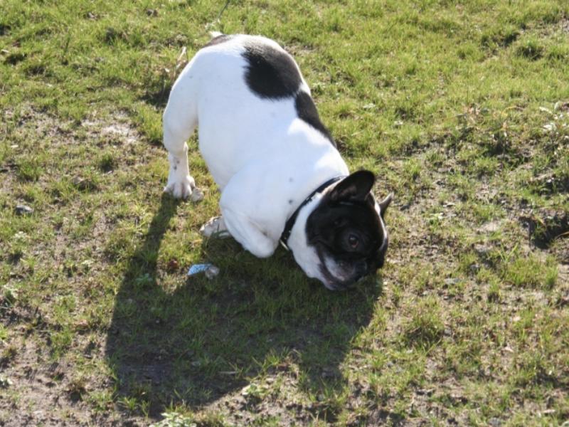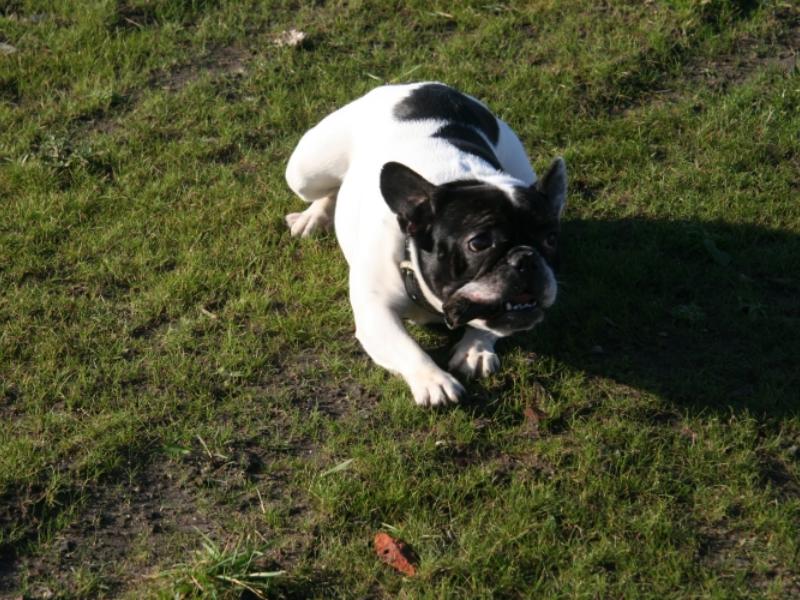 Die Französische Bulldogge ist ein idealer Familienhund. Als Begleiter erregt sie durch ihre auffallende Erscheinung und ihr freundlich aufgeschlossenes Wesen überall Aufsehen. Der ausgeprägte Spieldrang gepaart mit einer Portion tollpatschigkeit zieht sich durch das ganze Leben des Bully´s. Als begeisterter Spaziergänger und leidenschaftlicher Schnüffler liebt der French Bulldog ausgedehnte und kurze Spaziergänge .  Das Durchschnittsalter der Französischen Bulldogge beträgt ca. 10-12 Jahre. Ausnahmen gibt es nach oben und unten immer mal wieder. Was guckst Du Komm laß uns Fotenball spielen. Isch bin die von der Security Achtunnnggg  strammstehen. Auf dem Kriegspfad Mal hören ob da jemand kommt. Indiannneeeeeeerrrrrrr Friedenszigarre Haste ma Feuer Zum Photoshop_en Hmmmm.Lecker war das der tolle Rüde von vorhin Die Französische Bulldogge ist liebenswürdig, intelligent, spielfreudig, mutig und aktiv  Sie ist zärtlich,sehr verschmust und verfügt über einen umwerfenden Charme. Das Fell ist pflegeleicht und ein Bully lässt sich problemlos in einer Stadtwohnung halten, sei es in einer Familie mit Kindern oder von Einzelpersonen und älteren Leuten. Die Französische Bulldogge ist kein Kläffer,sie geht gerne spazieren ausser bei Regen oder Schnee, spielt ausgelassen mit Stöcken und Bälle, verträgt sich bei guter Sozialisierung problemlos mit anderen Hunden. Sein Bewegungsdrang ist nicht übermässig, so dass er sich durchaus auch mit einer kleineren Runde zufrieden gibt.   Franz. Bulldoggen vertragen kein übermässige Hitze und man sollte darauf achten, dass sie bei hohen Temperaturen nie wartend im Auto zurück gelassen werden. Auch sollten Spaziergänge an der prallen Sonne vermieden werden.