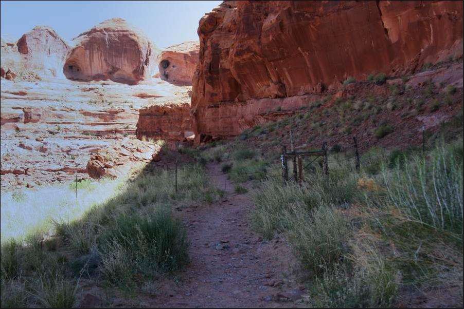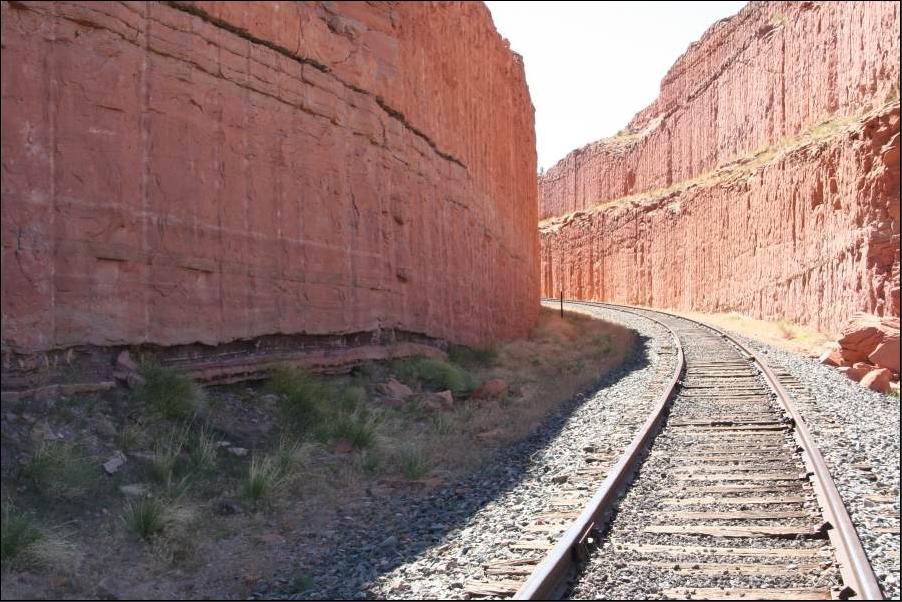 Man überquert die Bahnschienen der Potash Railroad und ab jetzt geht es querfeldein auf Slickrock weiter