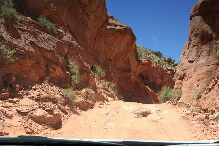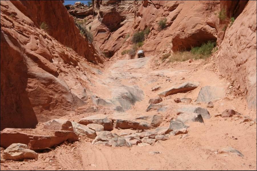 Hier kommste nur mit einem Fahrzeug mit hoher Bodenfreiheit weiter,dass schafft dieser SUV nicht und dabei ist es bis oben