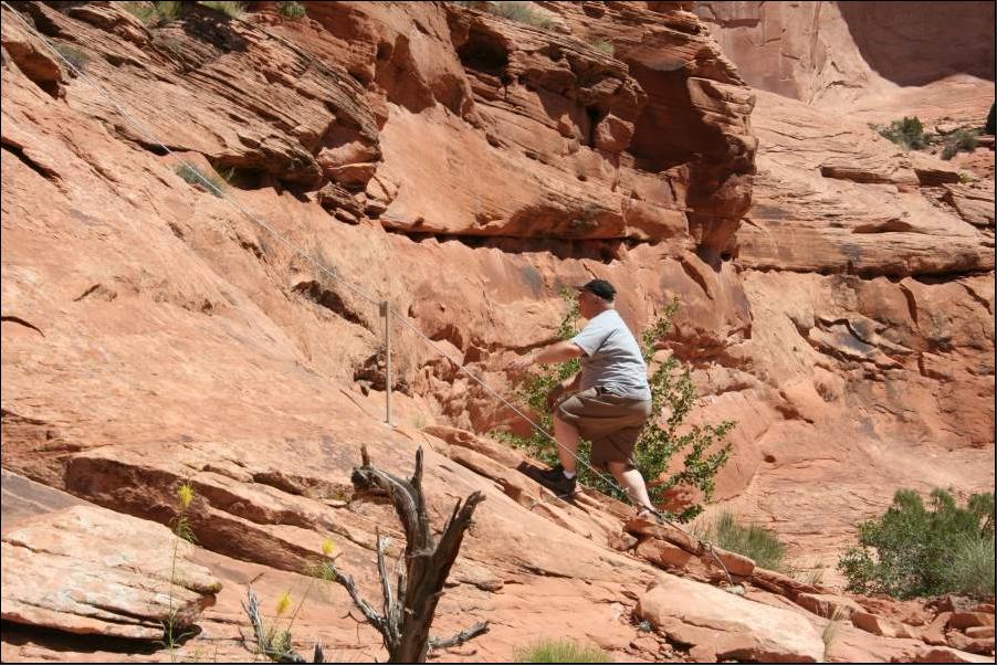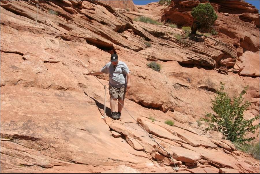 Ein zweites Sicherheitsseil das diesmal angebracht ist und zusätzlich sind hier noch einige Moqui Steps in den Fels
