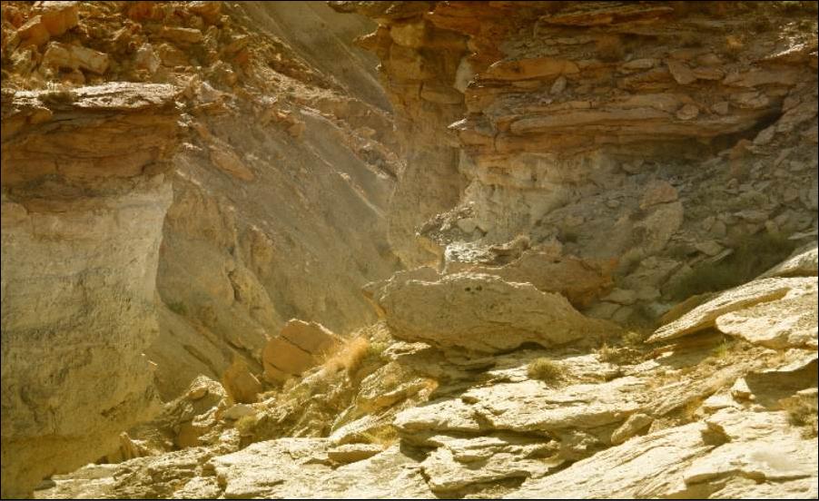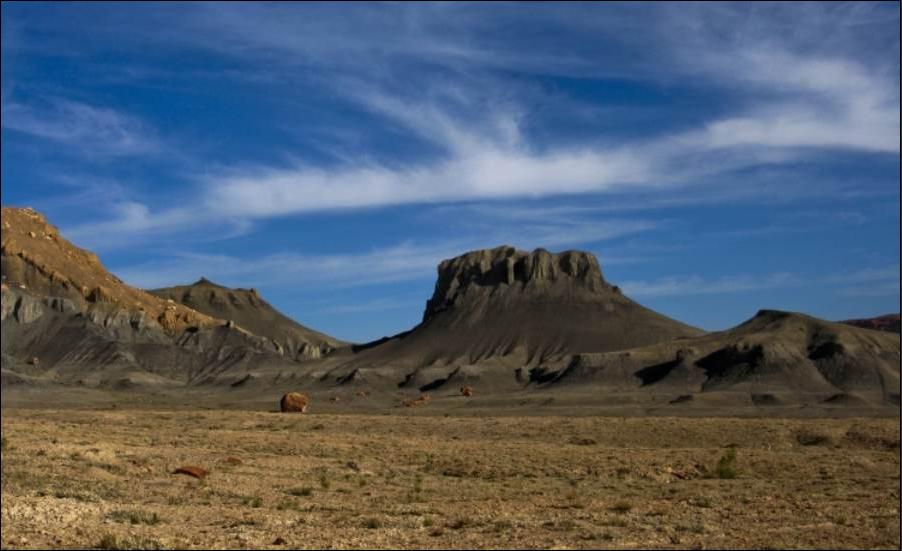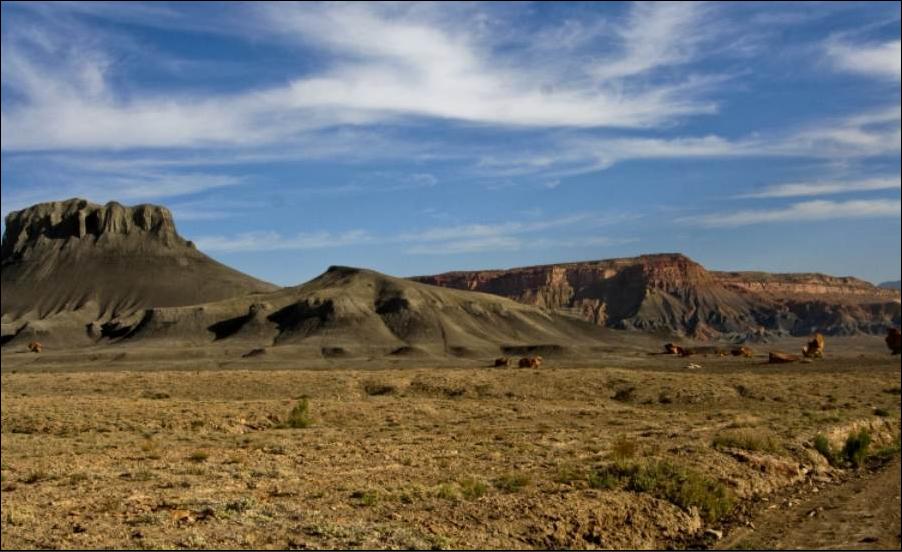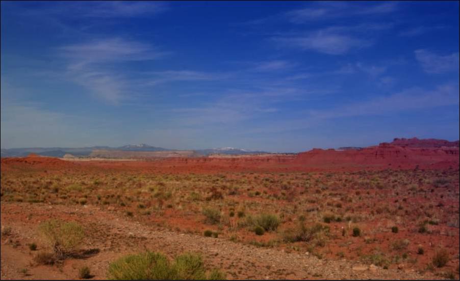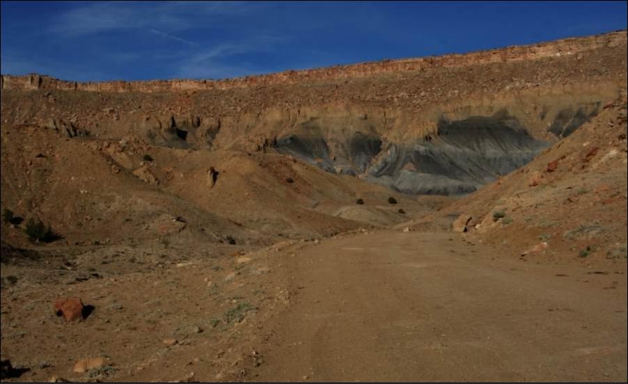 Von Südosten aus der San Rafael Desert führt eine kleine Strasse mit Teerbelag hinein in den North Temple Wash (EM 1012).