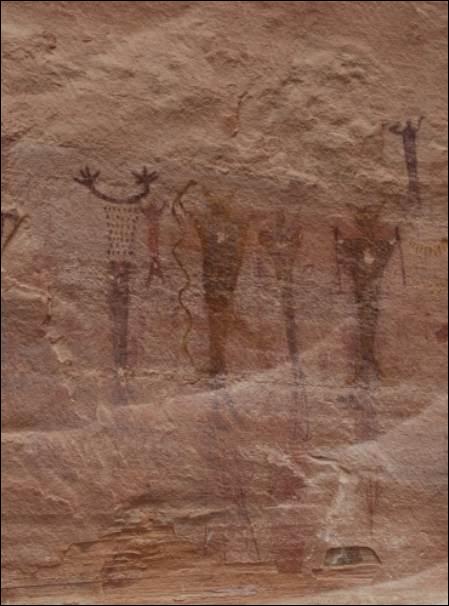 Wir schauten uns am Buckhorn Wash die Wandmalereien beim Pictograph Panel an und in unheimliches Knurren störte die