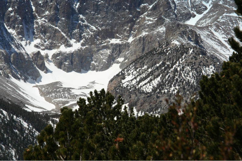 weithin sichtbarer Gletscher, der einzige in Nevada. Ein
